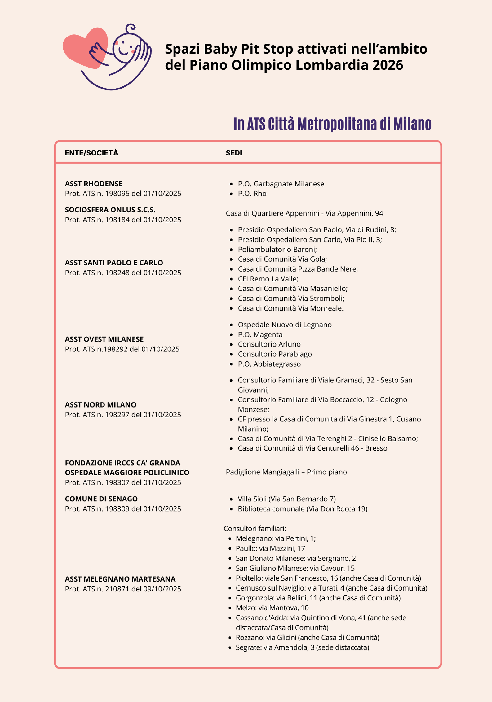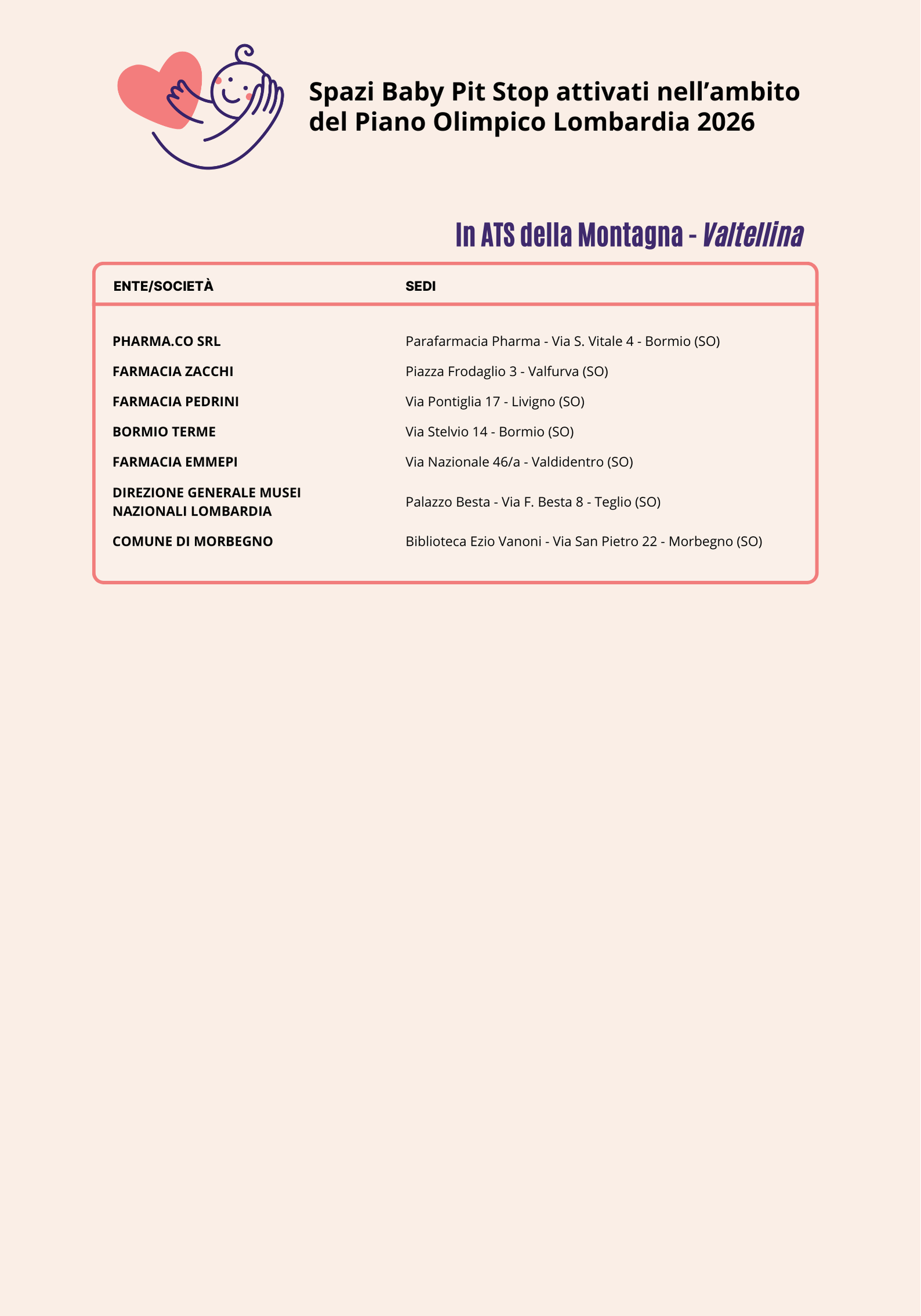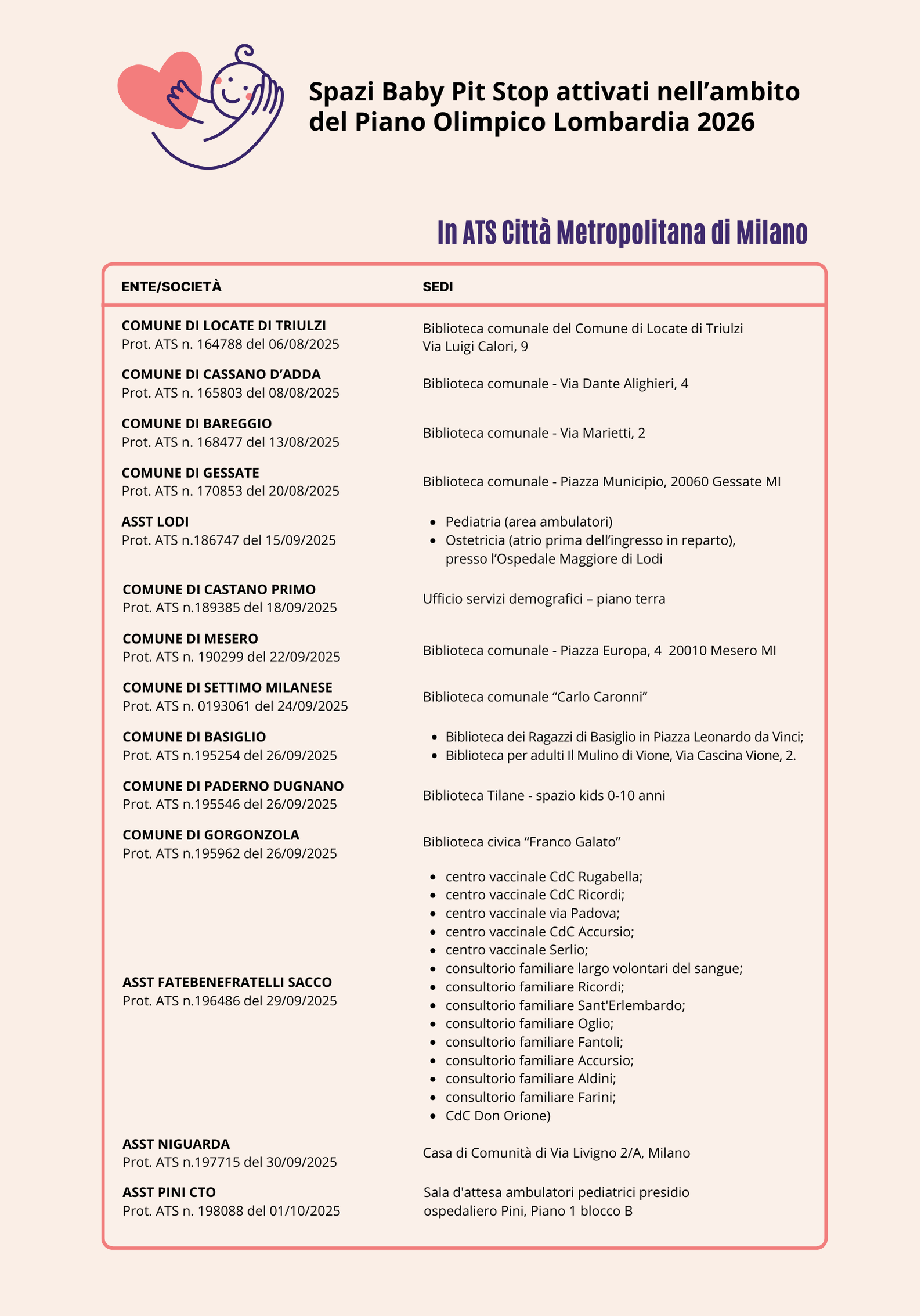 Questa iniziativa rappresenta un’eredità concreta dei Giochi 2026, capace di migliorare in modo duraturo la qualità dei servizi offerti alle famiglie e di rendere il territorio lombardo sempre più attento al benessere materno-infantile e all’accoglienza.